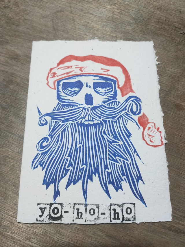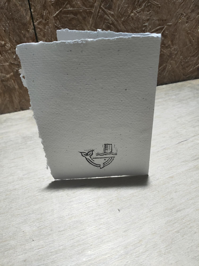 Hand printed card on handmade paper from Rocque Paper Scissors of Jersey.